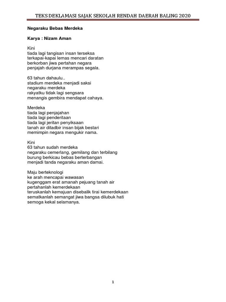 Deklamasi sajak kemerdekaan sekolah rendah perempuan bulan kemerdekaan 2021 ppd sabak bernam. Monday february 21 2022 edit. Sajak kemerdekaan yang dihasilkan oleh tokoh-tokoh ini penuh dengan maksud yang tersurat dan tersirat.